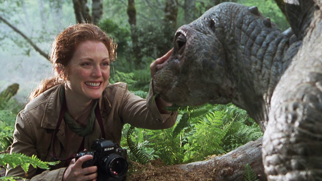 Estrenada cuatro años después de Jurassic Park, El mundo perdido comienza con un equipo de investigación que acude a una isla en la que John Hammond, el creador del Parque Jurásico envió en secreto algunos de sus dinosaurios clonados para dejar que crecieran en libertad. La idea es que los científicos liderados por Ian Malcolm (Jeff Goldblum) y la Dra. Sarah Harding (Moore) documenten y fotografíen cómo viven los seres prehistóricos en libertad.