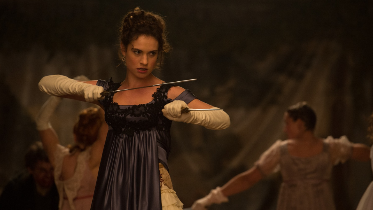 Lily James interpreta a Elizabeth Bennet, una joven brillante, fuerte y, en esta versión, letal cazadora de zombis. La película mantiene los elementos esenciales del clásico literario: los conflictos familiares, la presión social y, por supuesto, la tensión romántica entre Lizzie y el altivo Mr. Darcy. Pero en lugar de fiestas de té y bailes tranquilos, aquí hay entrenamiento con katanas, tiros certeros a la cabeza y vestidos manchados de sangre.