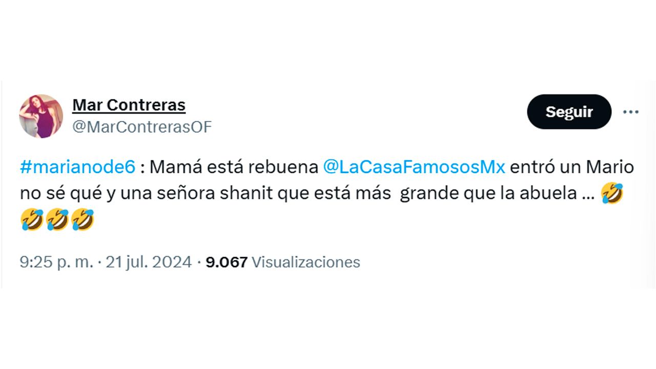 En X, el último tweet publicado de la actriz de 44 años nacida en Culiacán compartió que se encontraba viendo el reality show en compañía de uno de sus hijos, quien parecía entretenido con la aparición de ‘Mayito’ Bezares y la participación de Shanik Berman. Curiosamente, un año después fue confirmada como la quinta habitante de La Casa de los Famosos México.