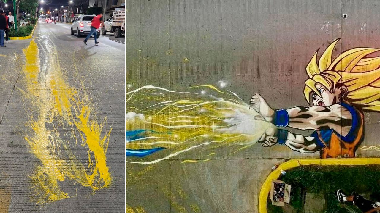 No hay duda alguna de que uno de los anime más queridos y populares es Dragon Ball, junto a One Piece, Sailor Moon, Los caballeros del zodiaco y más títulos la obra de Akira Toriyama ha dejado huella en los fans de la animación japonesa. Ahora, a décadas del estreno de la serie, algunos seguidores mexicanos encontraron la forma de rendirle tributo a Goku armando una obra de arte en el asfalto para arreglar una mancha de pintura.