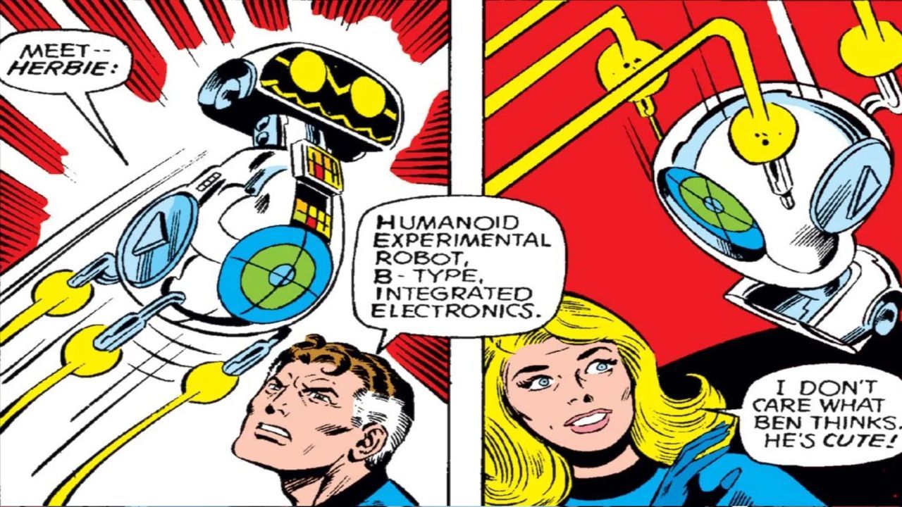 H.E.R.B.I.E. (siglas de Humanoid Experimental Robot, B-Type, Integrated Electronics) fue concebido por Stan Lee y Jack Kirby como una solución creativa para sustituir a la Antorcha Humana en la serie animada de los años 70, debido a problemas de derechos del personaje. Poco después, el simpático robot hizo su debut oficial en los cómics en Fantastic Four #209, creado por Marv Wolfman y John Byrne, ganándose un lugar permanente en el imaginario del equipo. Su función inicial era de soporte técnico y cuidado del joven Franklin Richards, pero con los años ha demostrado ser mucho más que un simple ayudante.