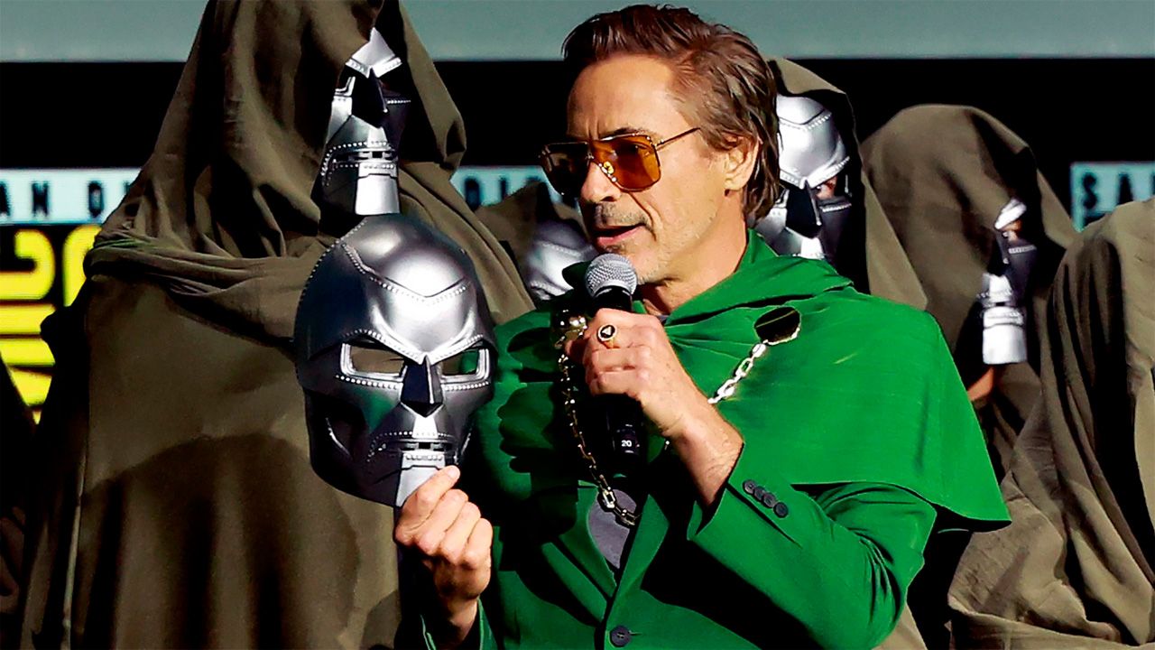 Al percibir algo inusual en la habitación, Sue activa un escudo de fuerza invisible y entra al cuarto. Es ahí que ve a Franklin sentado en el regazo de un extraño que únicamente se ve de espaldas. El niño mira hacia el rostro del hombre con capa verde y conforme la cámara se posa sobre el hombro del personaje, es posible ver que sostiene una máscara en su mano que ha retirado de su rostro. Este es el debut de Doctor Doom en el MCU, cuya interpretación correrá a cargo de Robert Downey Jr.