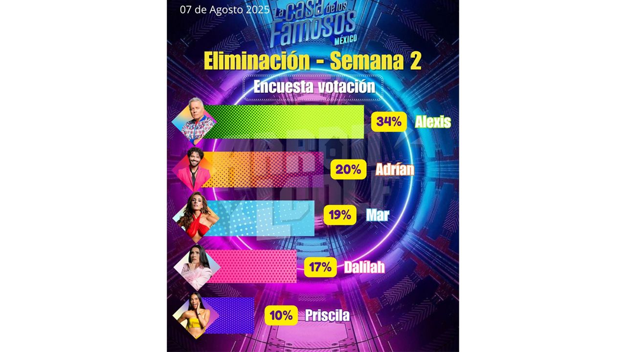 Aunque el actor salió victorioso de la primera eliminación, no se libró de ser nominado en la segunda semana; sin embargo, encuestas previas parecen indicar que una vez más se salvará de ser expulsado de la casa. Alexis Ayala, Mar Contreras, Dalílah Polanco y Priscila Valverde también se encuentran en la plantilla de celebridades que pueden abandonar la competencia en la próxima gala de eliminación.