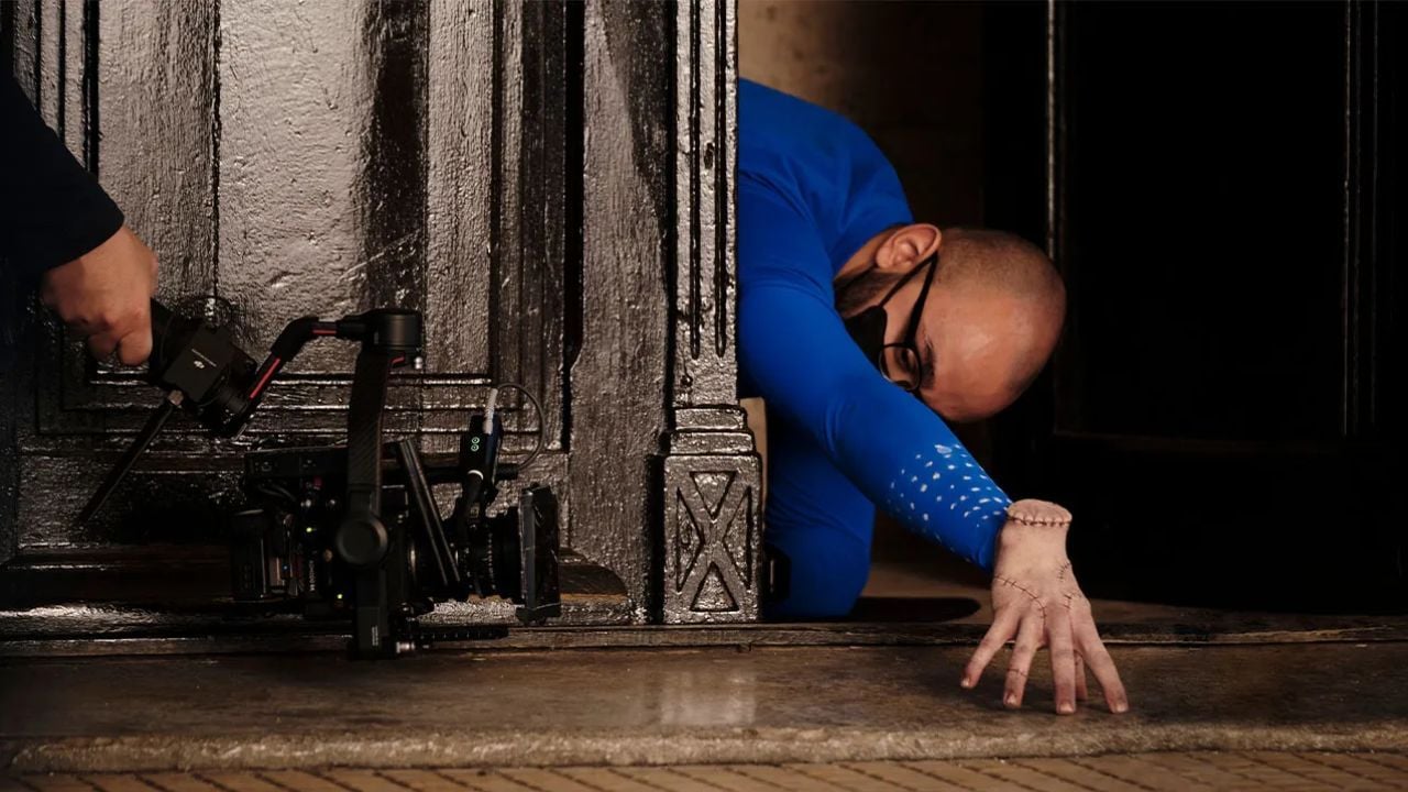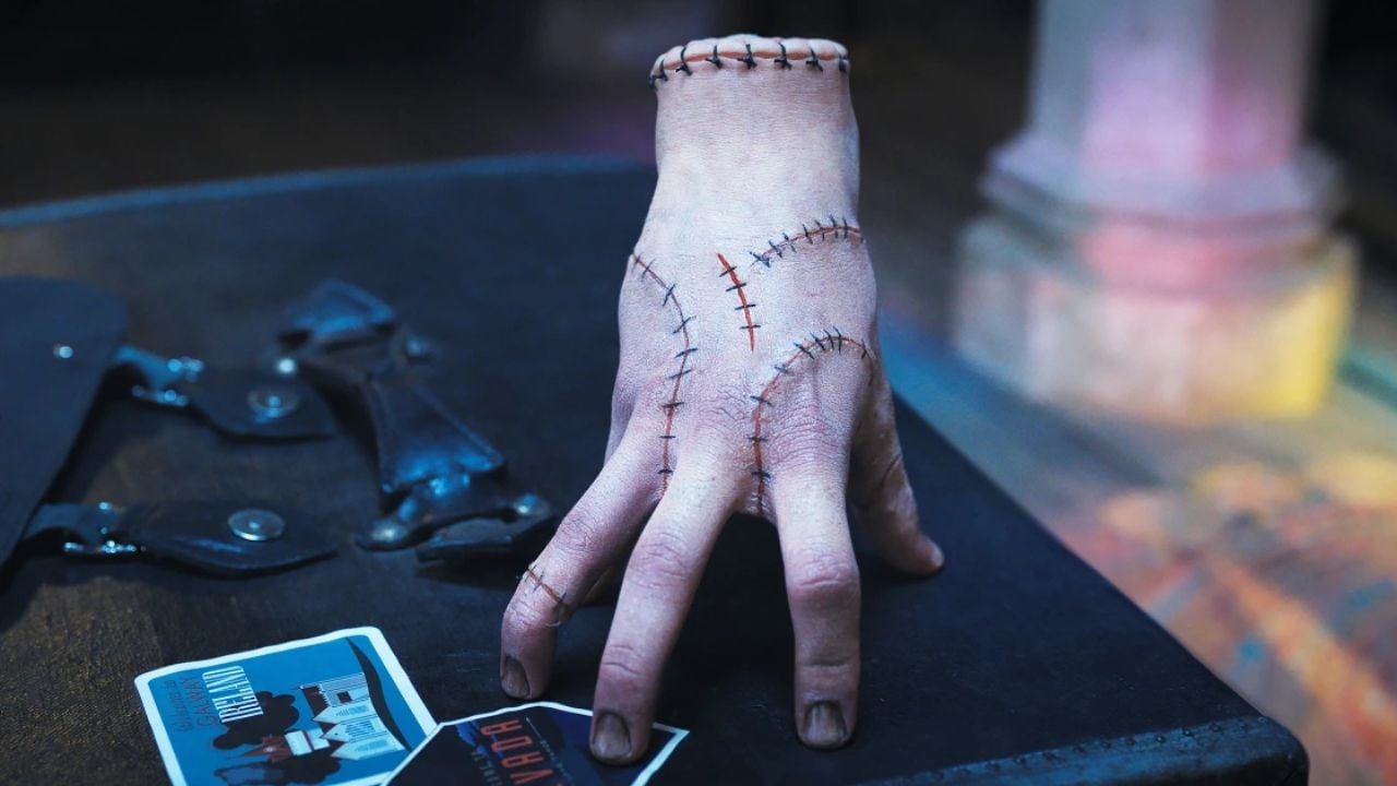 El proceso requirió semanas de ensayos y experimentación. Tanto Burton como Turnbull trabajaron estrechamente con Dorobantu para encontrar el movimiento y la personalidad adecuados. La primera escena rodada (cuando “Dedos” aparece para espiar a Merlina por encargo de sus padres) confirmó que todo ese esfuerzo había valido la pena. Jenna Ortega reaccionaba a la mano como si fuera un personaje más, ignorando por completo la presencia del hombre en traje azul detrás.