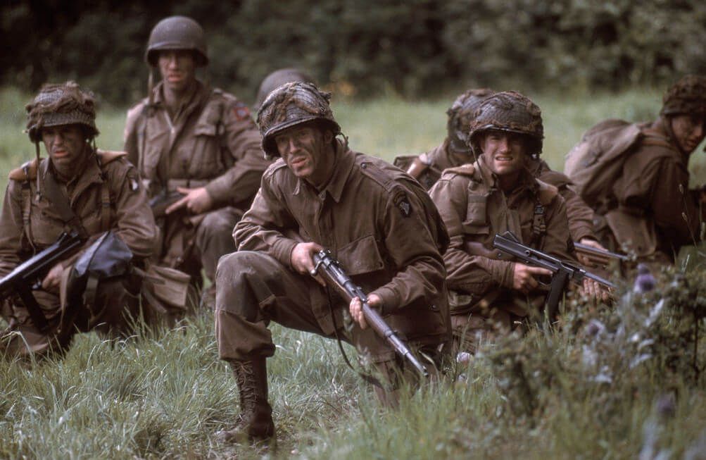 Esta miniserie de 2001 titulada Hermanos de Sangre de tan solo 10 episodios está basada en un libro del historiador francés Stephen Ambrose. Que sigue la historia de un grupo de paracaidistas del ejército de Estados Unidos, un grupo conocido como Easy Company. Este grupo formó parte de varias de las batallas cruciales de la Segunda Guerra Mundial como la invasión de Normandía, el Día D y la Operación Market Garden.