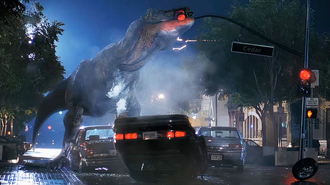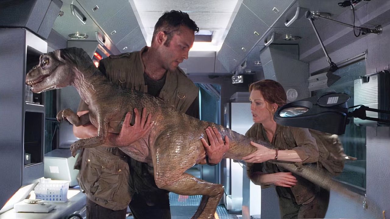 Pero si algo distingue a El mundo perdido es que Spielberg se permitió jugar más con el suspenso y la adrenalina. La película tiene secuencias que ya son parte del legado del cine de aventuras: la caravana colgando al borde de un acantilado mientras un T. Rex intenta destrozarla, la estampida de dinosaurios que persigue a los cazadores, y, por supuesto, la llegada del mismísimo tiranosaurio a San Diego.