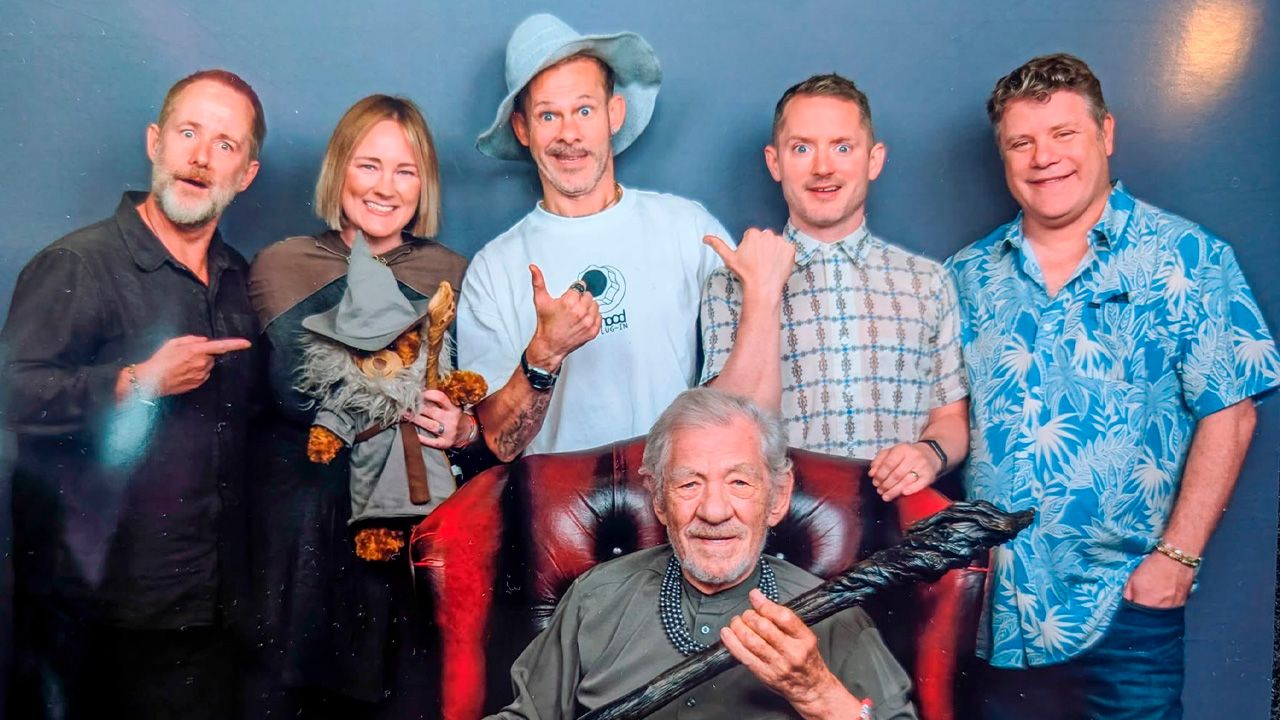 Fue así que una fanática aprovechó la oportunidad para retratarse junto a todos ellos en una fotografía grupal. Ian McKellen incluso traía su báculo entre las manos, mientras que la fan sostenía un oso de peluche caracterizado como Gandalf el Gris, siendo rodeada por Elijah Wood, Sean Astin, Billy Bod y Dominic Monaghan, los actores detrás de Frodo, Sam, Pippin y Merry.