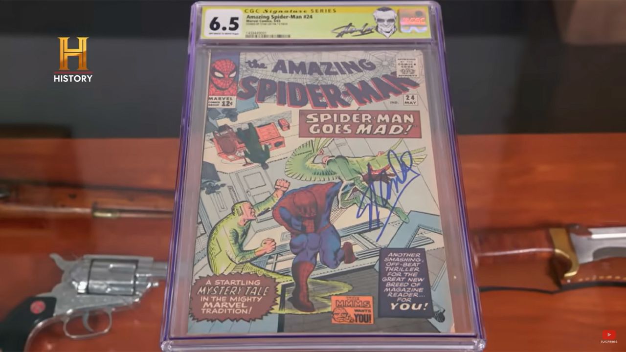 En un reciente episodio de El precio de la historia un hombre se acercó a una casa de empeño cargando en sus manos un ejemplar de The Amazing Spider-Man; el #24 con el subtítulo Spider-Man Goes Mad!. Perfectamente cerrado en un acrílico el cómic autografiado por el mismísimo Stan Lee llegó a las manos de Chumlee; posible comprador; quien de inmediato reconoció el valor del producto, pero como todo buen inversionista primero llamó a un experto para asegurarse de gastar lo indicado.