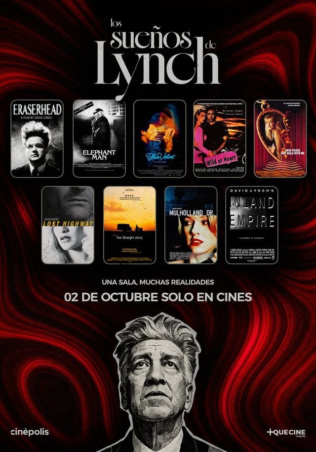 Los Sueños de Lynch, traerá de regreso a la pantalla grande títulos icónicos como: Cabeza Borradora (1977), El Hombre Elefante (1980), Terciopelo Azul (1986), Corazón Salvaje (1990), Twin Peaks: fuego camina conmigo (1992), Carretera Perdida (1997), Una historia Sencilla (1999), Sueños, misterios y secretos (2001) e Imperio (2006).