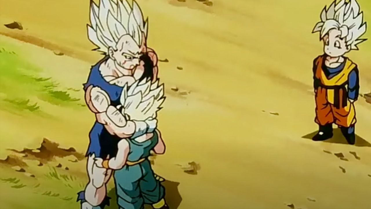 Antes de lanzarse a su ataque final contra Majin Buu, que le quitará la vida, Vegeta le dice a Trunks: "A pesar de ser mi hijo no tuve la sutileza de abrazarte ni siquiera cuando eras un bebé. Déjame abrazarte". El chico reacciona sorprendido ante la muestra de afecto de su padre, sin entender lo que está a punto de pasar. Esta acción, tan sencilla pero tan significativa, rompió por completo la armadura con la que siempre se mostró Vegeta.