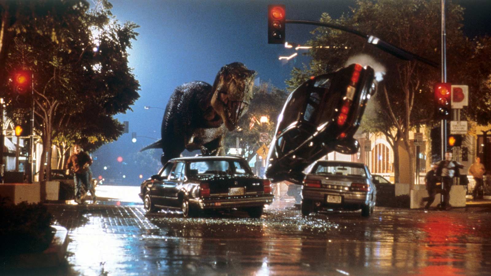 Pues si detienes la película en el minuto 1:48:43. encontrarás un momento asombroso en el que el colosal T-Rex se encuentra cazando dentro de un vecindario urbano paseando entre las casas, es ahí cuando pasa al lado de una cancha de baloncesto y las garras del dinosaurio imitan el movimiento de un rebote de pelota mientras mira hacia una cancha de básquetbol, un momento fugaz pero donde podemos ver al T-Rex manifestando un movimiento de Michael Jordan.