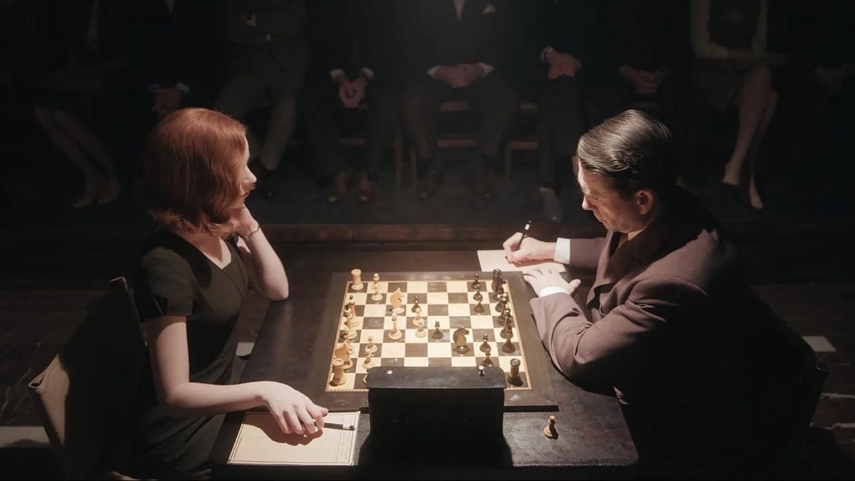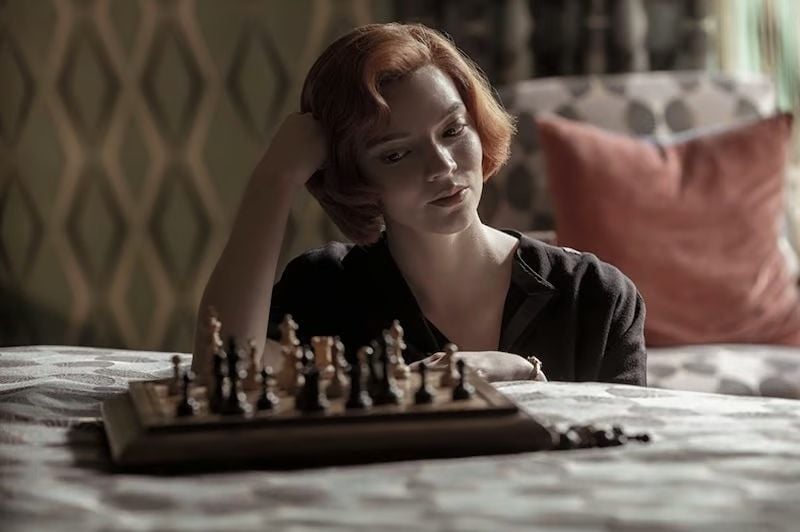 Gambito de Dama se sitúa en la época de los cincuentas y sesentas y sigue la historia ficticia de Beth Harmon, quien desde temprana edad demuestra tener un talento único en el juego de ajedrez, sin embargo, desde niña Beth sufrió de una infancia complicada pues tuvo que crecer en un orfanato sumado a una vida en la que las adicciones siempre se hicieron presentes.