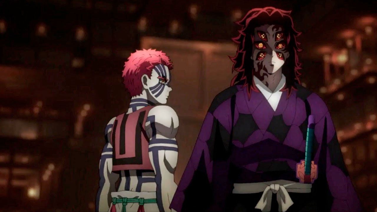Si bien no existe un detalle específico de cuánto duró el Duelo de Sangre entre Akaza y Kokushibo ni hay indicios de esto en el manga original la escena final de Castillo Infinito hace perfecto eco con todo esto. Si recuerdas, después de que Akaza se rindiera ante Tanjiro y Giyu hay una pequeña secuencia de Kokushibo quien se muestra bastante molesto por la muerte de la Superior Tres.