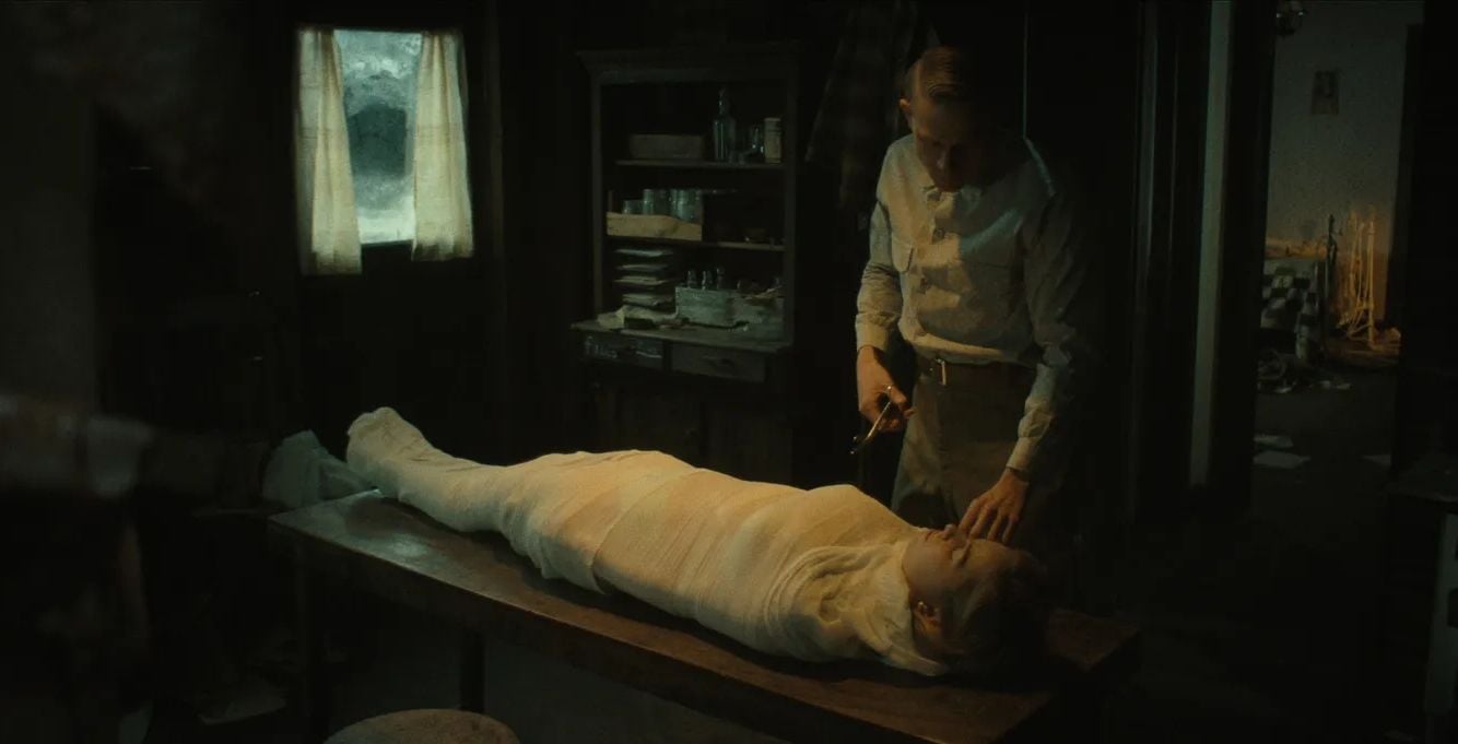 Durante el primer episodio de Monstruo: La historia de Ed Gein, hay una escena donde Gein mata a su hermano mayor, tras golpearlo con un trozo de madera, después arrastra su cuerpo al bosque y provoca un incendio forestal para justificar la muerte de su hermano, quien buscaba alejarse de su dominante madre Augusta, y recordemos de Gein tenía una extraña y perturbadora obsesión con su madre que dio inicio a su locura.