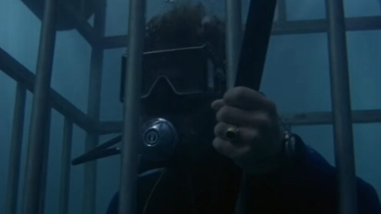 El animal, al sentirse atrapado, empezó a girar con violencia, golpeando la jaula con tal fuerza que el cabrestante se rompió y el artefacto quedó destruido en cuestión de segundos. "Si el actor hubiera estado en la jaula cuando eso pasó, habría muerto. Tuvimos suerte de que estuviera tan reacio a entrar", dijo Valerie Taylor.