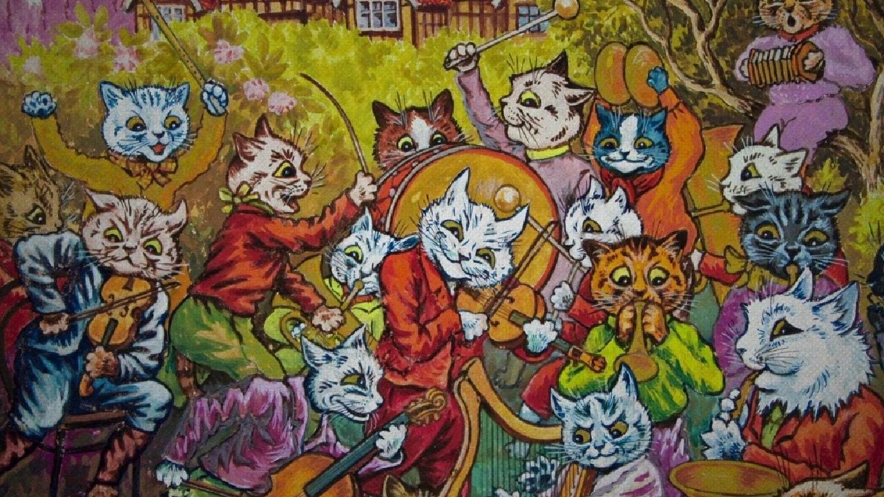 Respecto a Louis Wain podemos decir que fue un pintor e ilustrador británico conocido principalmente por sus icónicos dibujos de gatos antropomorfos que capturaron la imaginación del público victoriano y siguiendo aventuras similares a las suyas. Tras haber nacido en Londres, Wain mostró talento artístico desde joven, estudiando en la Westminster School of Art y dedicándose a la ilustración para periódicos y revistas. Su estilo combinó la ternura, el humor y la excentricidad, transformando a los gatos en personajes expresivos, vestidos en situaciones humanas, revolucionando la forma en que se percibía a estos animales en la sociedad.