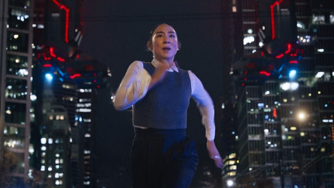 Y en medio de esa trama futurista, Greta Lee se enfrentó a algo muy terrenal: el miedo a las alturas. Su escena requería una caída controlada desde lo alto de un edificio, con un arnés de seguridad y cables especiales. Nada de pantallas verdes, nada de efectos por computadora. Solo ella, el vacío y un equipo de especialistas diciéndole que confiara en ellos.