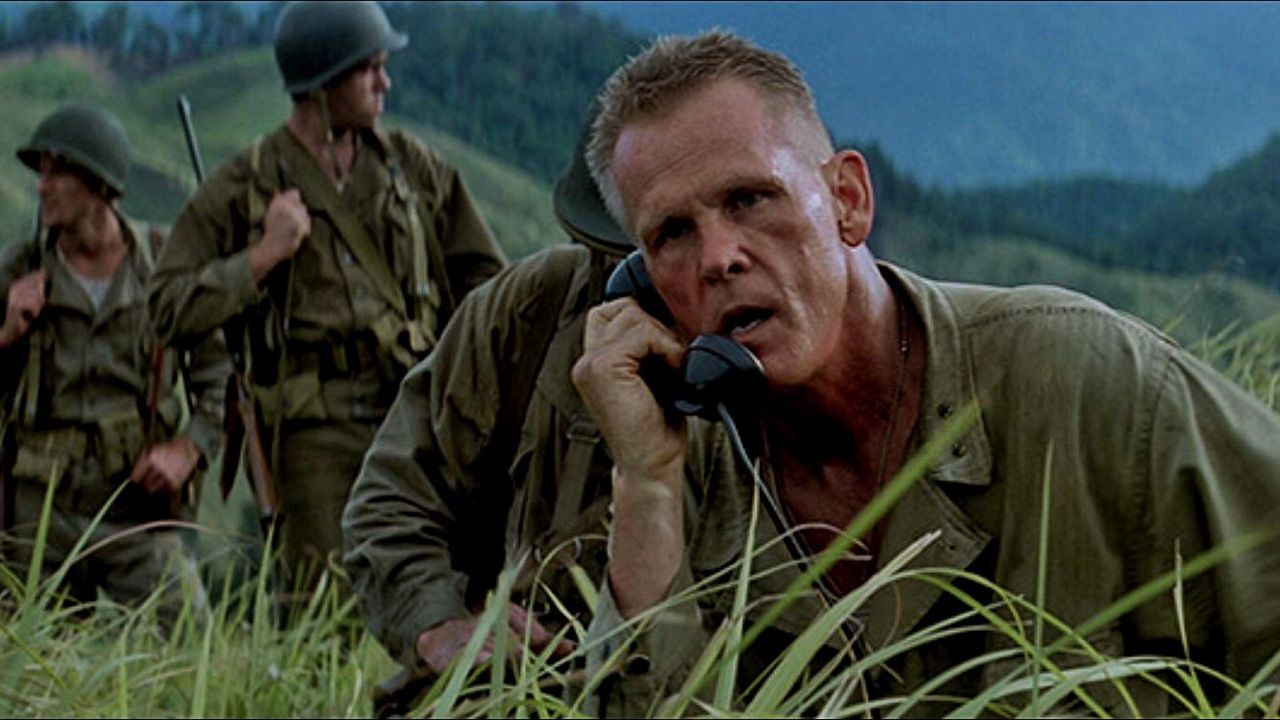 El reparto era impresionante: Sean Penn, Jim Caviezel, Adrien Brody, Nick Nolte, George Clooney y Woody Harrelson, entre muchos otros. El centro de la historia es la voz interior de los soldados, que reflexionan sobre la vida, el miedo y la futilidad del conflicto mientras el mundo a su alrededor se desmorona.