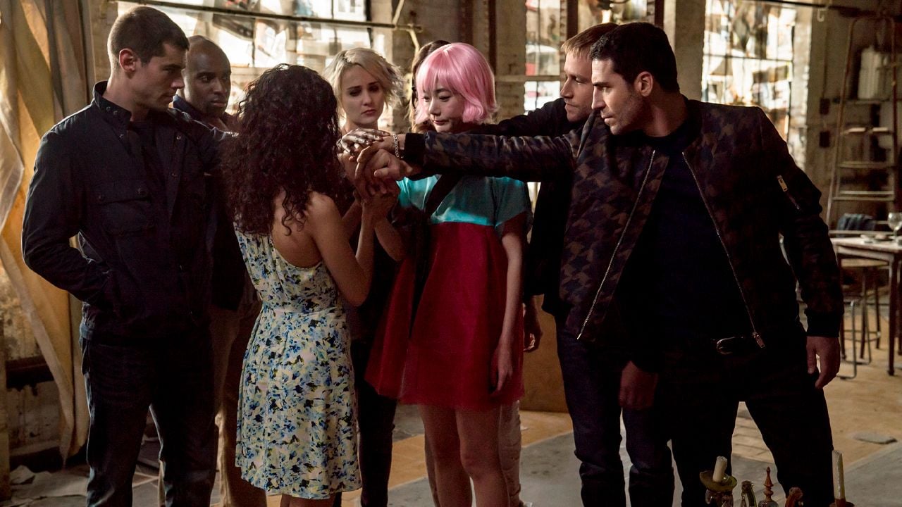 Will Gorsk (Brian J. Smith), Nomi Marks (Jamie Clayton), Lito Rodriguez (Miguel Ángel Silvestre), Sun Bak (Doona Bae), Capheus Onyango (Aml Ameen y luego Toby Onwumere), Wolfgang Bogdanow (Max Riemelt), Kala Dandekar (Tina Desai) y Riley Blue (Tuppence Middleton) pueden verse, oírse y sentir lo que el resto vive incluso tomando decisiones a través de los demás.