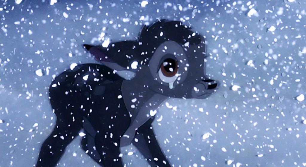 Esta escena sin duda rompió el corazón de miles de niños en su infancia pues representa una lección sobre el crecimiento y la pérdida que toca las fibras más sensibles. Más adelante Disney retomaría este recurso tan sensible con El Rey León, en donde el pequeño Simba nos recuerda a aquel Bambi vulnerable y solitario que nos sigue sacando lágrimas.