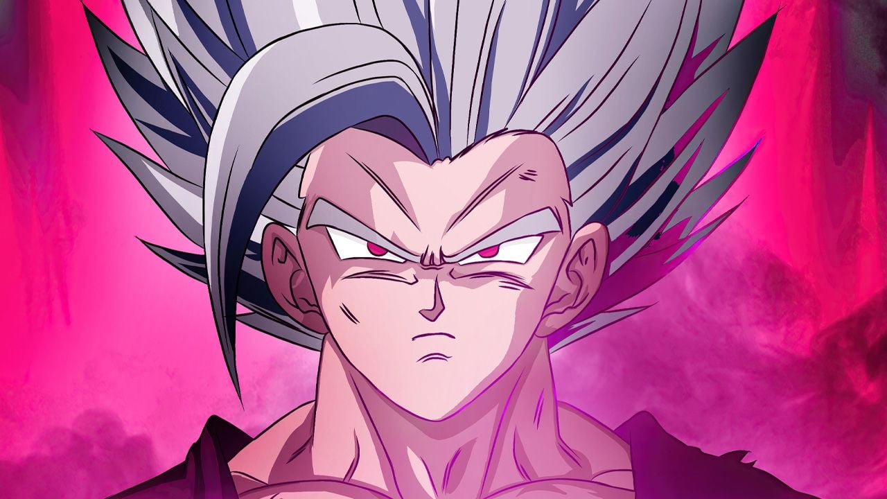 La transformación de Gohan Bestia llega en Dragon Ball Super: Super Hero, donde el personaje rompe sus límites motivado por la furia y la pérdida. Su diseño rompe por completo con las reglas del ki tradicional: cabello blanco-plateado erizado, ojos rojos intensos y un aura eléctrica que parece más un rugido visual que una energía clásica.