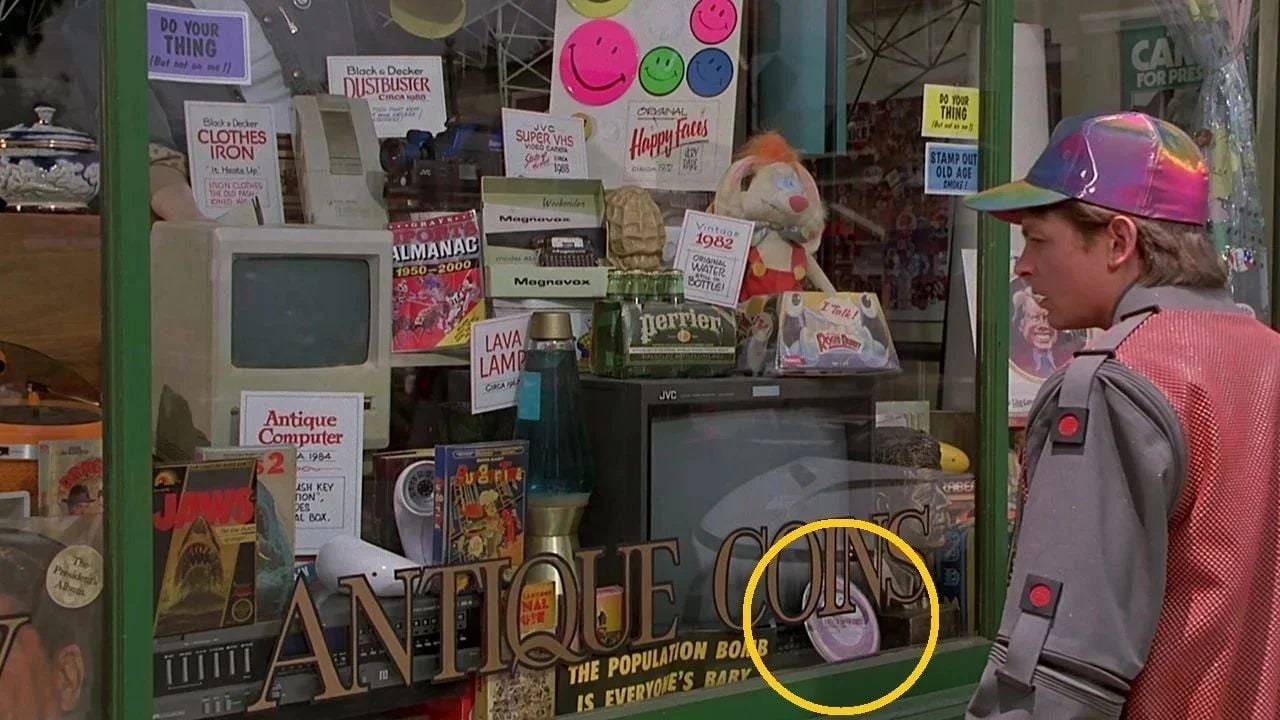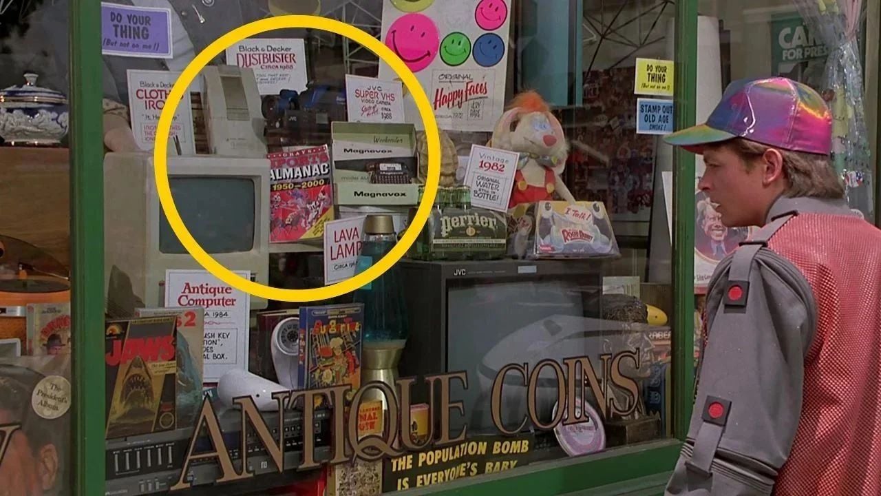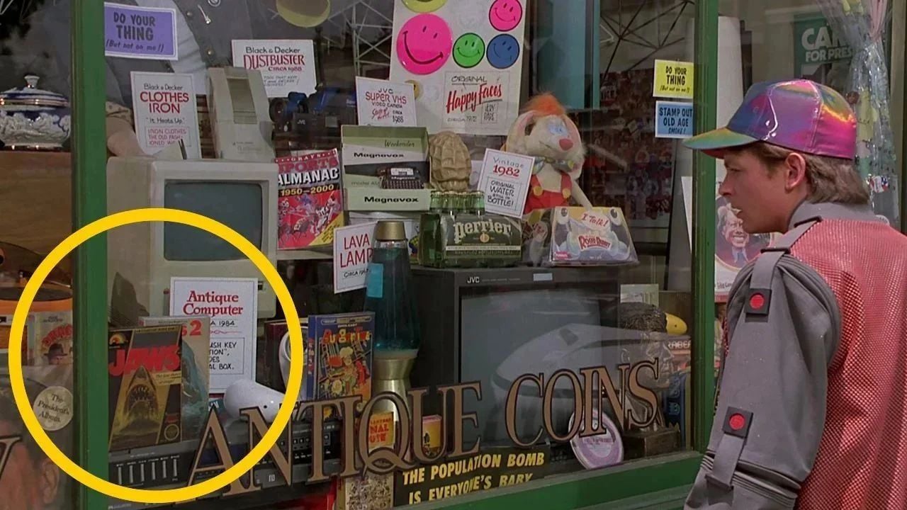 En Volver al Futuro II de 1989 vemos a Marty McFly situado en el entonces futuro año de 2015 y los creadores llenaron la película de pistas ocultas, ya que tan solo en la escena que mencionaremos hay varios de ellos. Para verlo, tiene que pausar Volver al Futuro II disponible a través de Prime Video, en exactamente el minuto 12 con 30 segundos y echar un vistazo de cerca al escaparate que se encuentra frente a Marty en el que se detiene fascinado después de su llegada al mundo futurista.