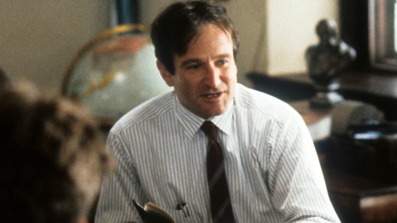 John Keating, interpretado por Robin Williams, rompe las reglas desde el primer momento. No dicta clases como los demás y no se queda detrás del escritorio: les habla de poesía, del amor, del arte y de la vida misma.