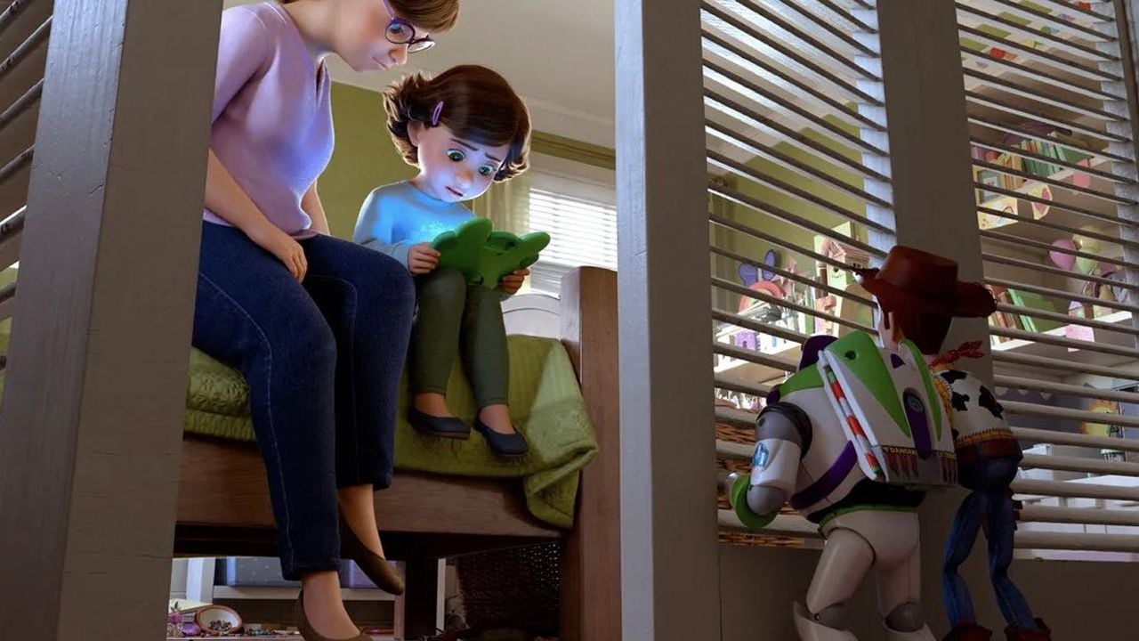 Es así que la nueva imagen muestra a Woody y Buzz escondidos detrás de una puerta, observando a lo lejos cómo Bonnie y su mamá están entretenidas con Lilypad, la tablet con cara de ranita que es ahora la gran amenaza para los juguetes que un día fueron de Andy.