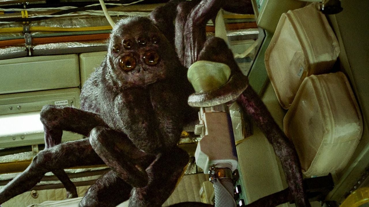 Y entonces aparece una enorme araña parlante que camina por el interior del transbordador y comienza a hablar con él. A veces de forma amable, a veces incómoda y otras dolorosamente honesta. ¿Es un ser extraterrestre real? ¿Es una alucinación? La película nunca te da una respuesta clara y ahí está su mayor fuerza.