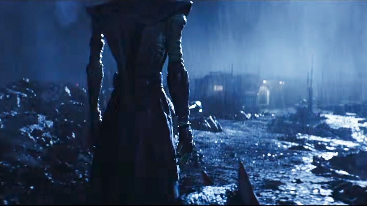Durante una escena caótica, bajo la lluvia, relámpagos y un territorio hostil, aparece un misterioso personaje que porta un sombrero y una armadura, mismo que es acompañado por un animal semejante a un lobo.