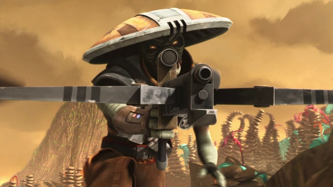 Y si no estás tan familiarizado con la saga The Clone Wars o quizá el brillo de tu celular estaba demasiado bajo cuando viste el tráiler, entonces debes saber que se trata del famoso Embo, un cazarrecompensas de la especie Kyuzo que se destaca en el universo de Star Wars por ser uno de los mejores de su gremio durante las Guerras Clon, rivalizando en habilidad con otra leyenda: Cad Bane.