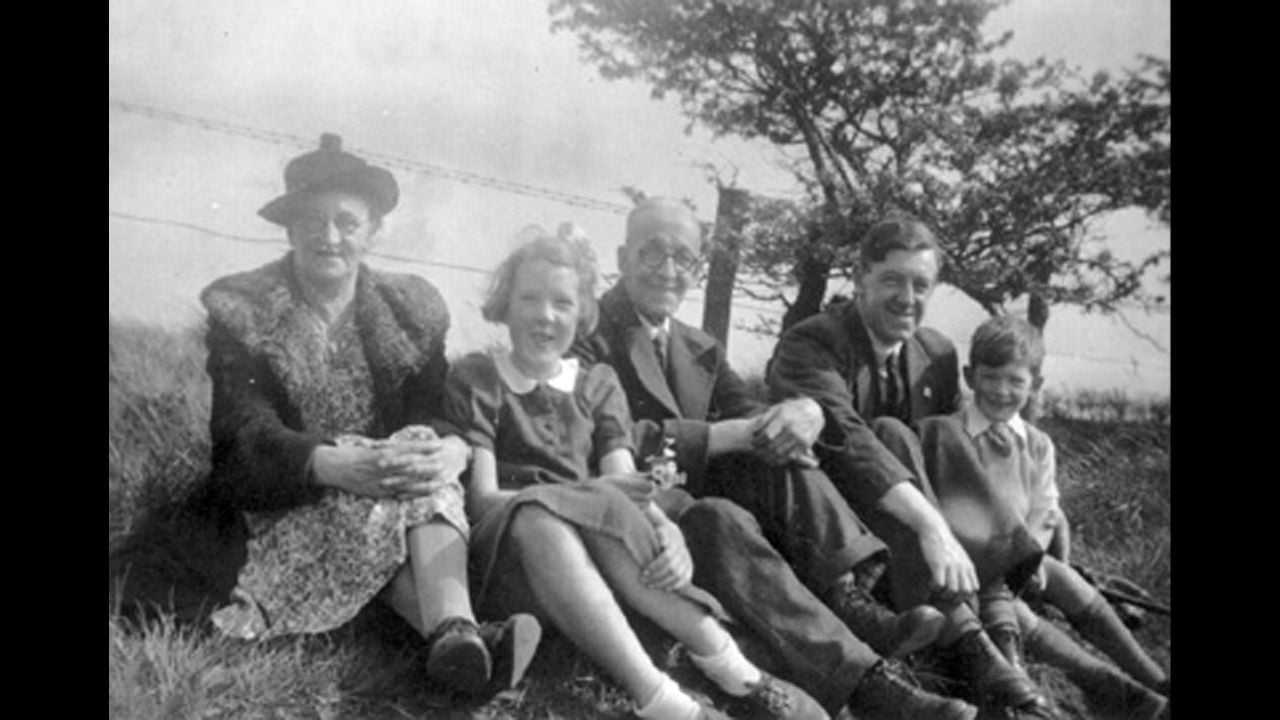 En una imagen grupal aparecen su tía abuela Minnie, su hermana Jean, su abuelo William Henry McKellen, su padre Denis y el propio Ian, con apenas nueve años, durante una caminata de fin de semana por los alrededores de Wigan. Están sentados sobre el pasto, relajados, vestidos con ropa formal incluso para una salida al campo, algo muy propio de la época.