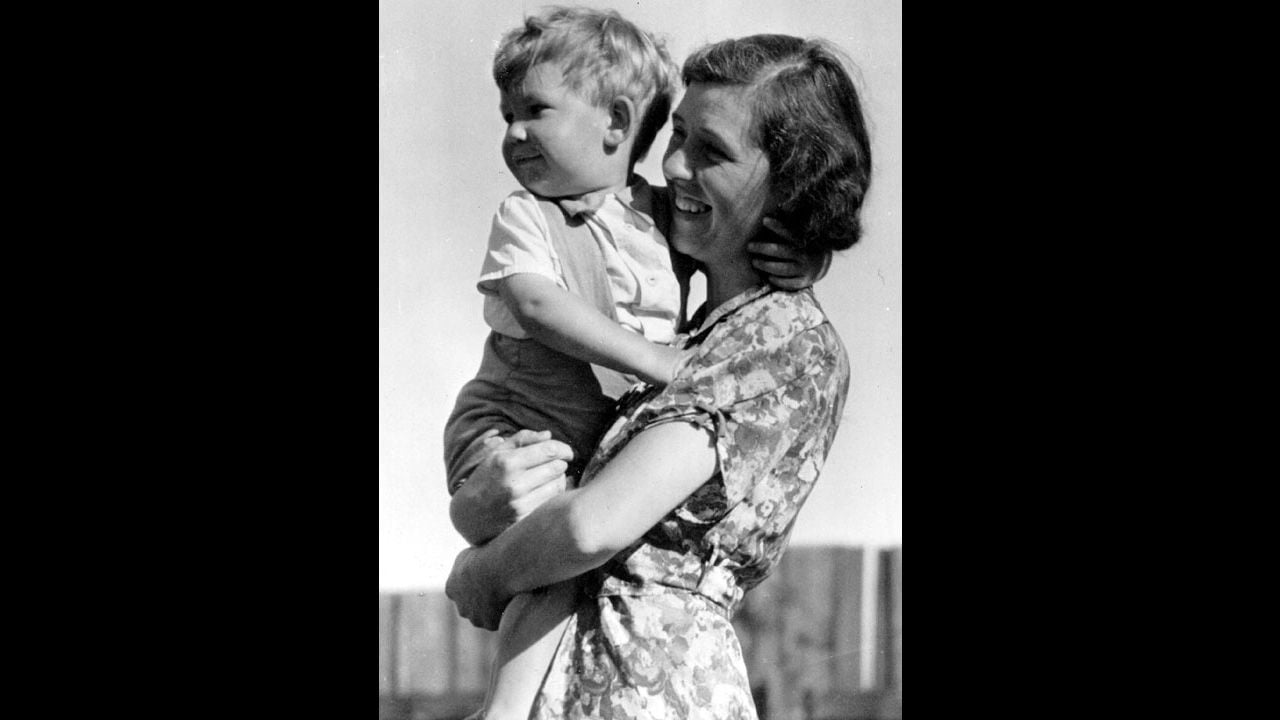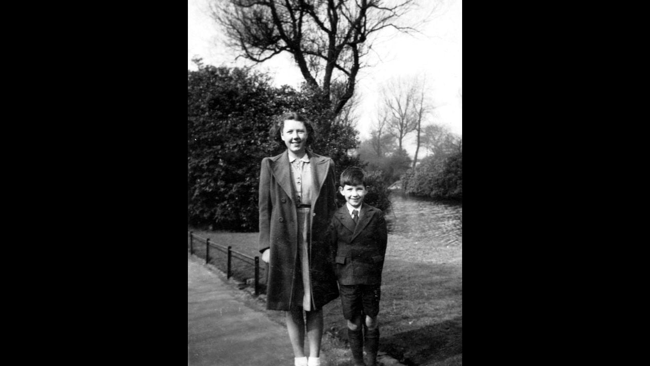 Otra fotografía lo muestra en brazos de su madre, Margery Lois McKellen, en el jardín de su casa en Parson’s Walk, en Wigan, Lancashire. Ella sonríe mientras sostiene al pequeño Ian, que mira hacia otro lado, distraído, como cualquier niño curioso. La escena es simple: una madre joven, un hijo pequeño y un jardín modesto en el norte de Inglaterra.