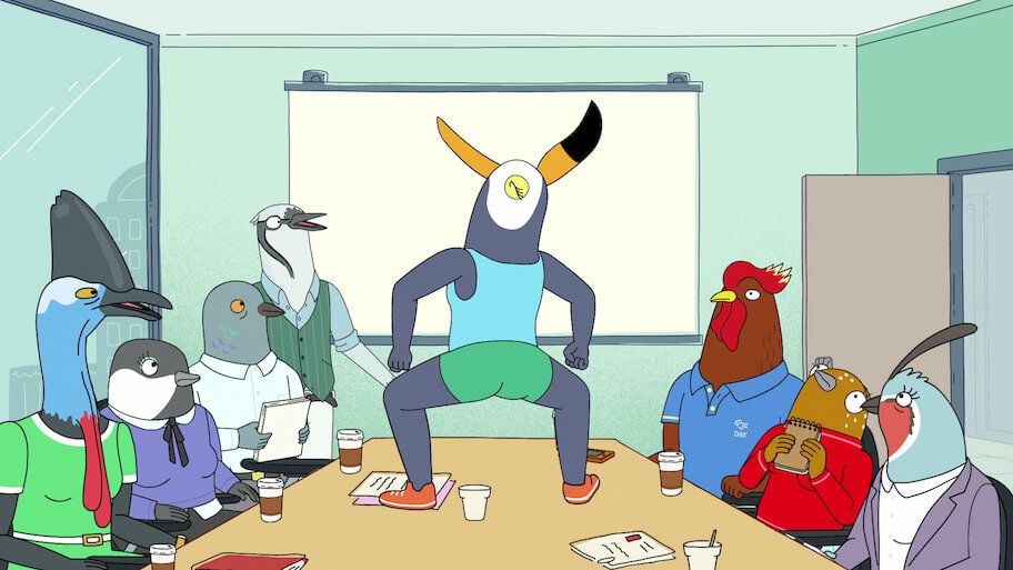 Una tucán muy despreocupada y una insegura ave cantora son dos buenas amigas que se ayudan mutuamente en la vida ya que viven en el mismo edificio de departamentos y les pasan todo tipo de aventuras. Una de las series para adultos más divertidas y creativas que hay en streaming. Está disponible en Netflix y HBO Max.
