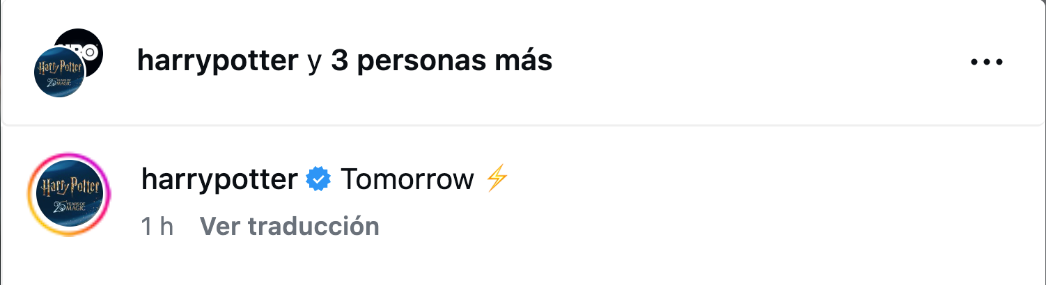 Y aunque esta imagen ya le hizo el día a miles de potterheads, la publicación fue acompañada de un enigmático “tomorrow” (en español: “mañana”), algo que sin duda alguna pone sobre la mesa la posibilidad de tener mañana mismo el primer tráiler de la serie de HBO Max, pero esto sigue sin estar del todo claro.