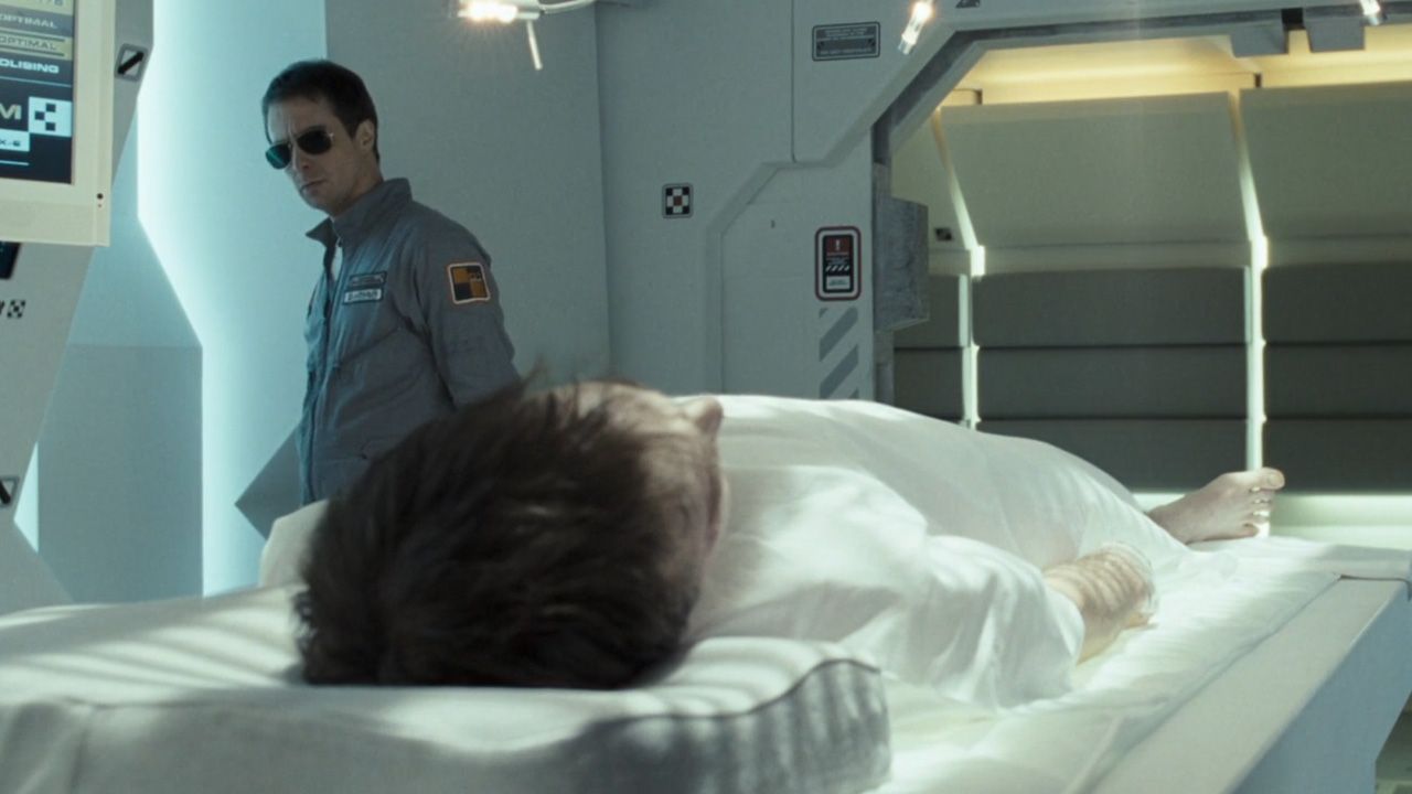 Gran parte de la película se sostiene en una sensación constante de aislamiento. Sam está completamente solo, acompañado únicamente por un sistema inteligente que lo asiste en sus tareas diarias.