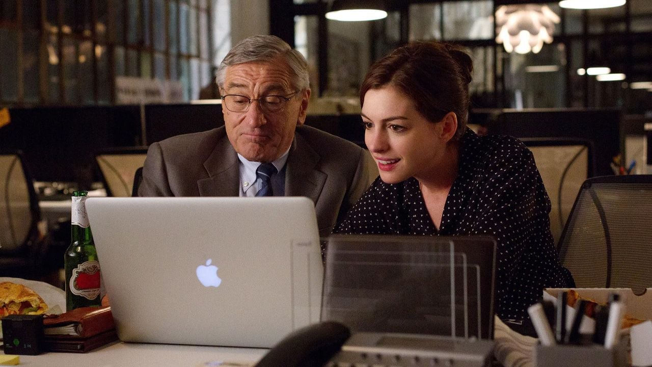 Robert De Niro hace un papel que le queda increíble: sereno, amable, elegante, como uno esos personajes que entran a una escena y de inmediato la vuelven más habitable. Su Ben simplemente escucha, observa y está presente. Anne Hathaway, por su parte, sostiene muy bien el vértigo de una mujer que intenta ser buena jefa, buena madre, buena pareja y buena en todo, mientras apenas encuentra tiempo para respirar.