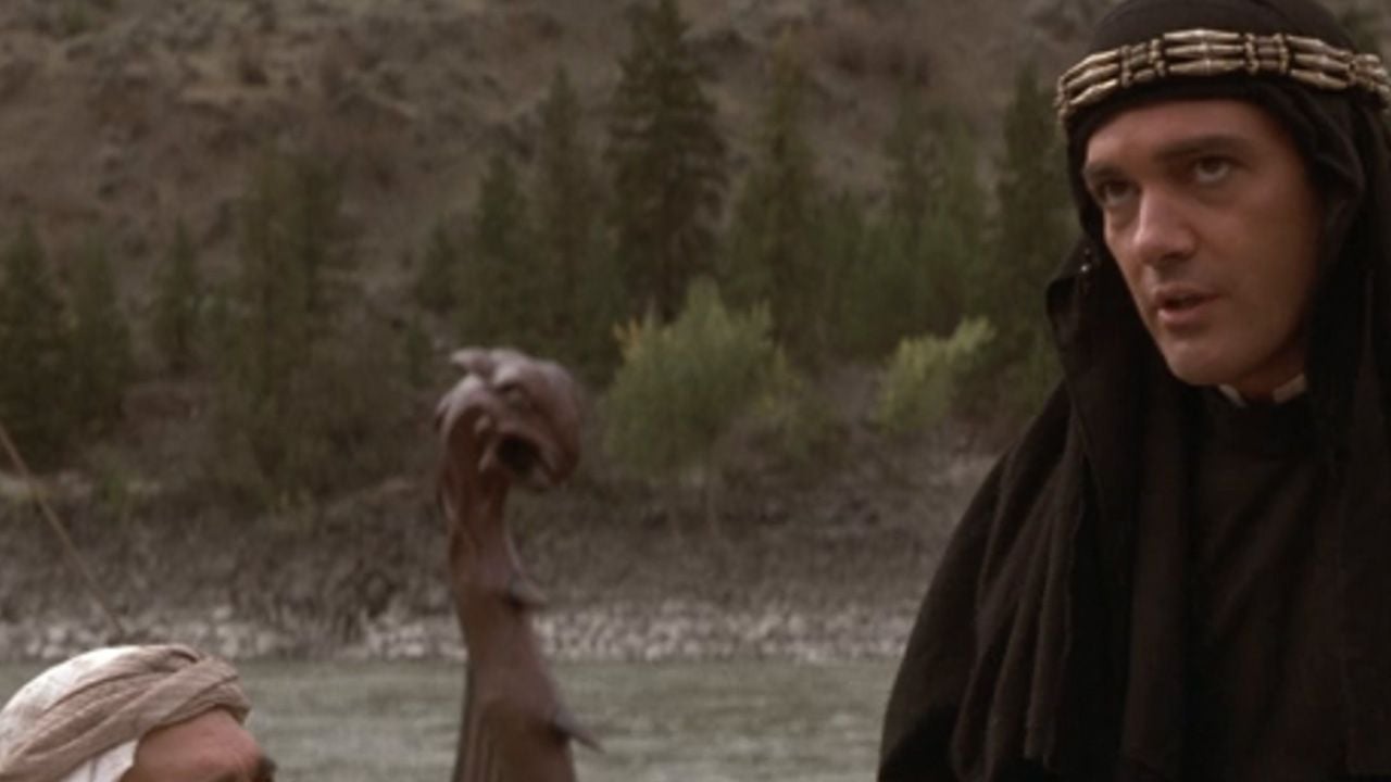 La cinta es El guerrero nº 13, estrenada en 1999 y protagonizada por Banderas como Ahmed Ibn Fahdlan, un noble árabe del siglo X que es expulsado de sus tierras después de involucrarse con la mujer equivocada. Acompañado por su mentor, interpretado por Omar Sharif, emprende un viaje hacia el norte y termina cruzándose con un grupo de guerreros vikingos que están por enfrentar una amenaza brutal: una horda salvaje que ataca poblados y devora a sus habitantes.