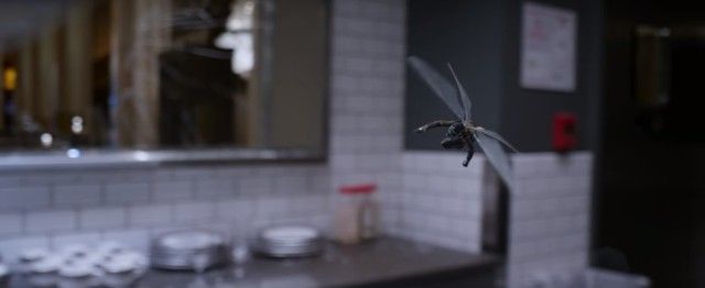 Pudimos echar un vistazo a quien será una de las villanas principales del filme: Ghost, que aunque en los cómics es hombre, aquí será mujer y es interpretada por Hanna John-Kamen (la serie Killjoys). Originalmente un enemigo de Iron Man, Ghost es un saboteador industrial que según él, solía ser un ejecutivo de una empresa millonaria de tecnología. Por circunstancias desconocidas, el personaje odia y desprecia a todas las corporaciones. Según él, éstas destruyeron su vida, así que usa su propia tecnología, un traje que le permite hacerse invisible e intangible (aunque no ambas al mismo tiempo), para destruirlas. Sin importar la filiación o meta de la corporación en turno. La identidad de Ghost es desconocida hasta la fecha, por lo que no causa mayor ruido que para la película del Hombre Hormiga se haya decidido volver femenino al personaje. ¿Habrá un enfrentamiento climático entre Ghost y la Avispa? Hagan sus apuestas.