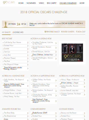 ¿Ya hiciste tu quiniela? ¡Nosotros también! ¿Qué te parece si las comparamos a través de la página oficial del Oscar y vemos quién va ganando en tiempo real?