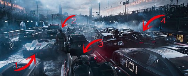 Comencemos de izquierda a derecha: en la primera flecha podemos ver el Mach 5 que conducía Meteoro en la serie animada. Justo al lado está uno de los personajes más famosos del videojuego Street Fighters, Ryu. Mientras que en el número 3 tenemos al Batimóvil clásico de la serie de los 60 protagonizada por Adam West. Y por último tenemos al Interceptor que sale en las primeras dos películas de Mad Max.