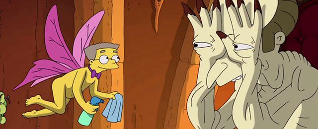 No podía faltar una de las introducciones más icónicas de Los Simpson, la realizada por el director mexicano Guillermo del Toro, quien hace un montón de referencias hacia el cine y la literatura de terror, además de a sus propias cintas y monstruos.