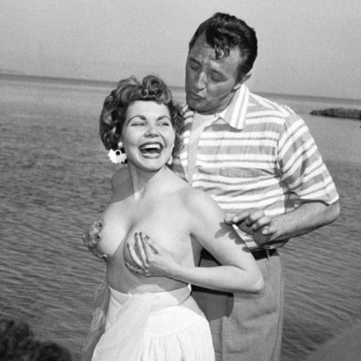 En 1954, el actor Robert Mitchum estaba paseando por la playa cuando de repente Simone Sylva, una aspirante a actriz o starlet, como se les llamaba entonces, se acercó a él y se quitó la parte superior del bikini. El pobre Mitchum no sabía ni dónde poner las manos y menos cuando se dio cuenta de que Sylva venía acompañada de un fotógrafo. La starlet, que buscaba hacerse famosa a costa de Mitchum, comenzó a vender las fotos a la mañana siguiente sobre la Croisette, así que los administradores del festival tuvieron que pedirle, no tan amablemente, que abandonara Cannes… para siempre.