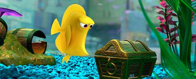 Este pez amarillo está obsesionado con las burbujas que salen de un cofre en el fondo de la pecera donde habita. Cada que aparecen comienza a decir “Burbujas, burbujas”. El doblaje al español le añadió una que otra palabra, pero en el idioma original prácticamente sólo se limita a decir “Bubbles” sin importar que el agua de su tanque ya esté muy sucia y sólo salgan esferas pestilentes del tesoro.