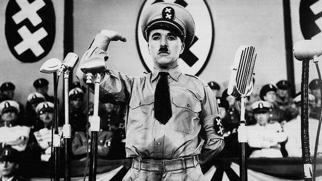 La primera película hablada del mimo Charles Chaplin, no sólo critica y satiriza al régimen nazi de Adolf Hitler cuando el político alemán aún seguía vivo y ponía en práctica sus ideas racistas -disfrazadas de orgullo nacional- que atentaban contra seres humanos inocentes en campos de concentracón. Al final, uno de los dos personajes que interpreta Chaplin pronuncia uno de los discursos políticos más famosos de la historia del cine. Vestido de fascista, habla de igualdad y democracia.