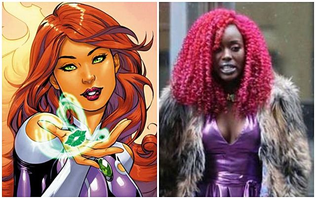 Esta princesa extraterrestre de Los Jóvenes Titanes (lLiga de la Justicia Junior), fue mal recibida en su versión real interpretada por la actriz afroamericana Anna Diop. Las imágenes del rodaje de la serie juvenil live action, despertaron inconformidades ante la decisión de colocar a Starfire un cabello rizado que la caricaturiza al extremo. La actriz, se defendió argumentando que fue una mala fotografía tomada en un día de clima difícil, añadiendo además: "Los comentarios racistas, peyorativos y crueles, no tienen nada qué ver con la persona que recibe ese abuso. Y como sé esto, no me inmuto"
