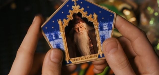 Grindelwald (Johnny Depp) comienza a tener relevancia en la historia de Harry Potter hasta el final de la saga, pero la primera vez que escuchamos su nombre fue en La piedra filosofal. Cuando Harry compra todos los dulces del carrito en el tren rumbo a Hogwarts, abre una rana de chocolate. Cada una incluye un cromo sobre un mago famoso y a Harry, obvio, le toca la de Dumbledore (Jude Law). Por la descripción en la parte de atrás de la tarjeta nos enteramos que que Dumbledore es famoso por descubrir los 12 usos de la sangre de dragón, por sus trabajos alquimistas con Nicholas Flammel, el creador de la Piedra filosofal y por su legendario duelo con Gellert Grindelwald, quien era considerado un mago oscuro y que fue derrotado en 1945.