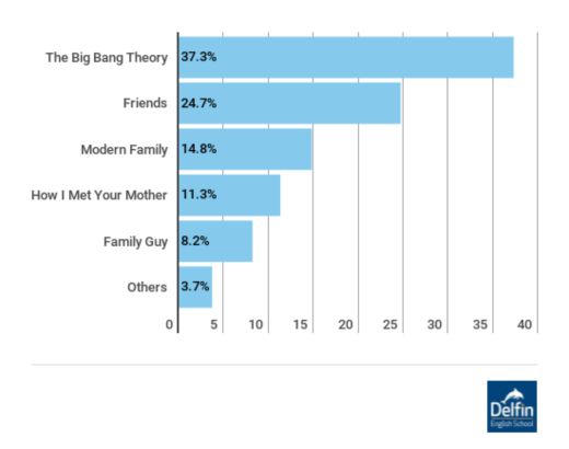 La Delfin English School de Londres decidió preguntarle a 1000 mexicanos cuáles son sus series favoritas para aprender inglés y descubrió que la gran favorita de hombres y mujeres es The Big Bang Theory, seguida por Friends, Modern Family, How I Met your Mother y Family Guy.