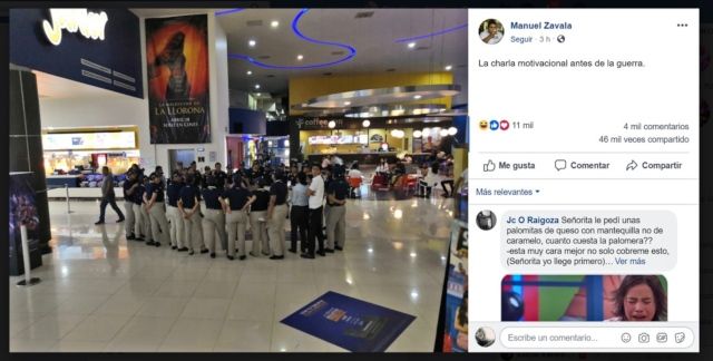 Con todo, la imagen que que más pronto se hizo viral no fue la de algún cosplay, sino la de los empleados de Cinépolis preparándose (¿o rezando?) para la debacle que se aproxima...