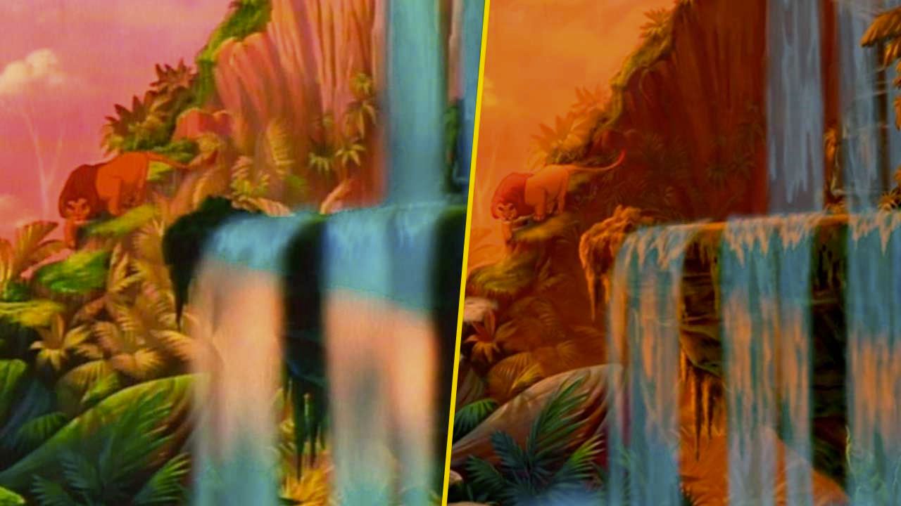 Cuando los protagonistas interpretan “Esta noche es para amar” en la animación original, en una de las tomas se podía apreciar una postal con cascada incluida, sin embargo, no estaban del todo bien diseñadas debido a que ya se habían atrasado y los fondos eran insuficientes para detallarlas. Pero para la versión remasterizada pudieron mejorarlas, a final de cuentas ya habían probado que el largometraje era un éxito.